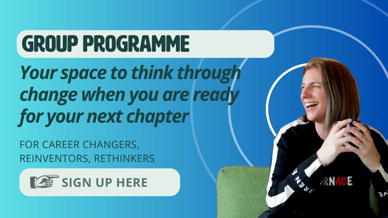 If you are pondering what to do next, what does that look like for you - the next cohort for the group programme exploring our Change Mastery, and how we navigate our next moves, starts end of Feb. Sign up today and we’ll jump on a free 121 call to start your thinking. More info here.